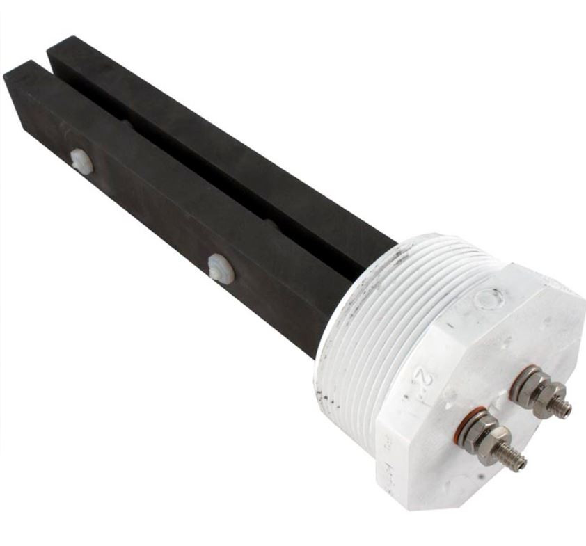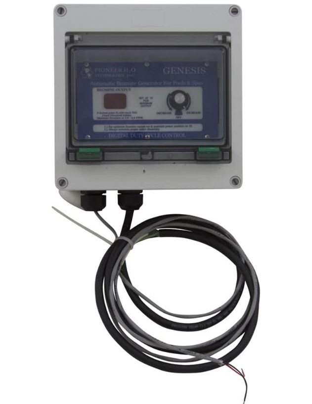 De elektrodecel is geïnstalleerd in een transparante PVC-behuizing en vervolgens aangesloten op de DC-uitgangsdraden van de Genesis-controller. Minder dan 30 watt aan gelijkstroom wordt digitaal gepulseerd door de elektrodecel, waardoor natriumbromide elektronisch wordt omgezet in broom.